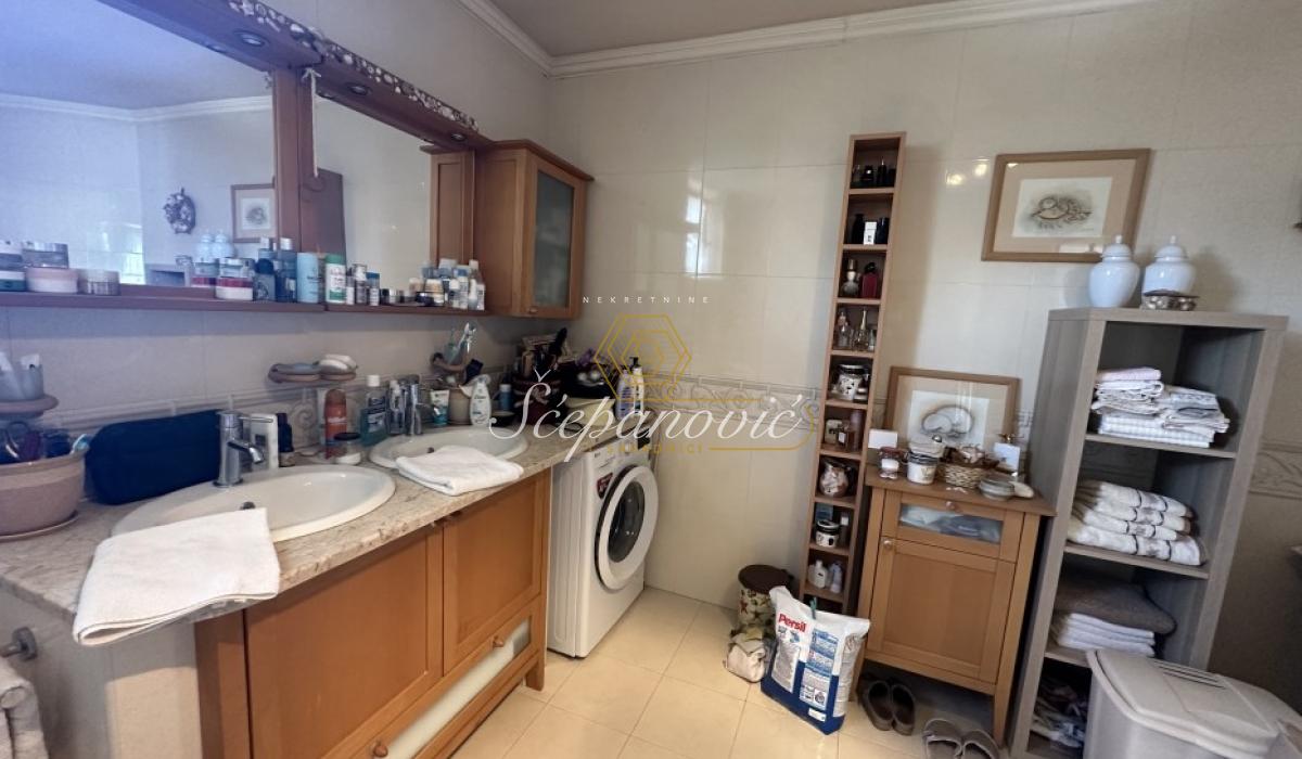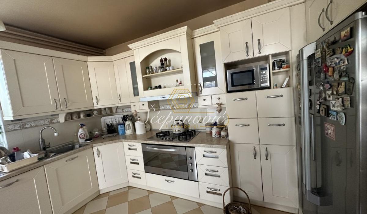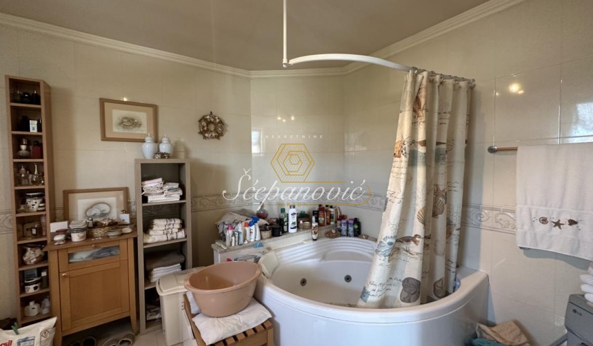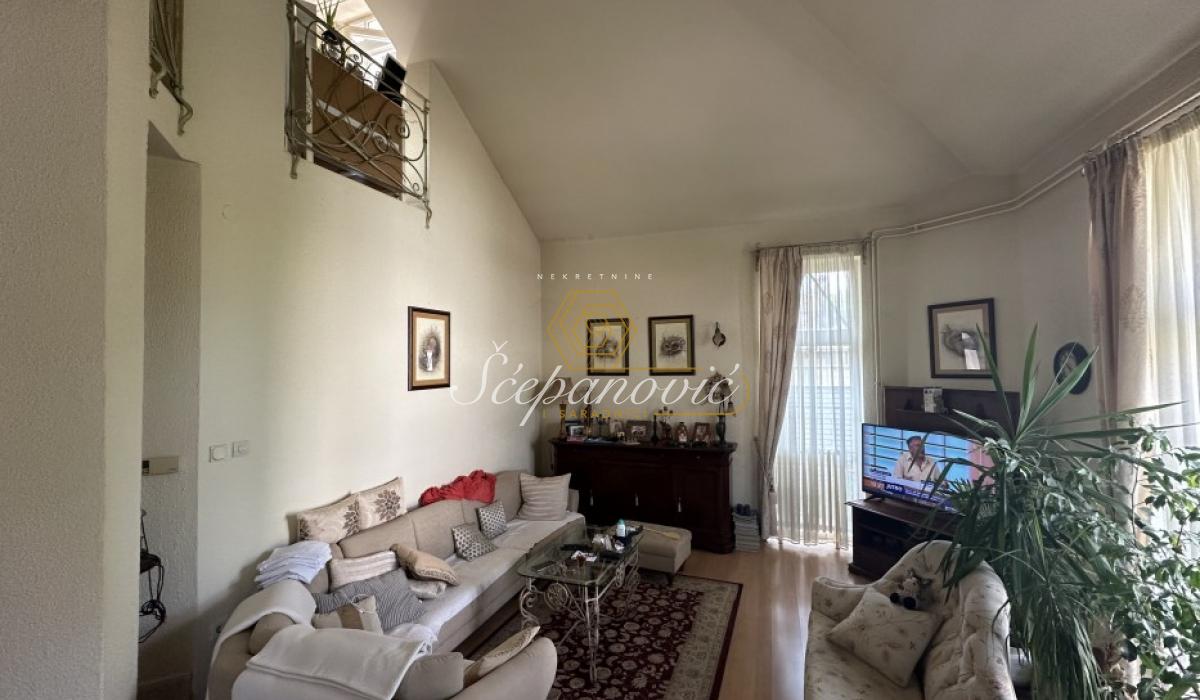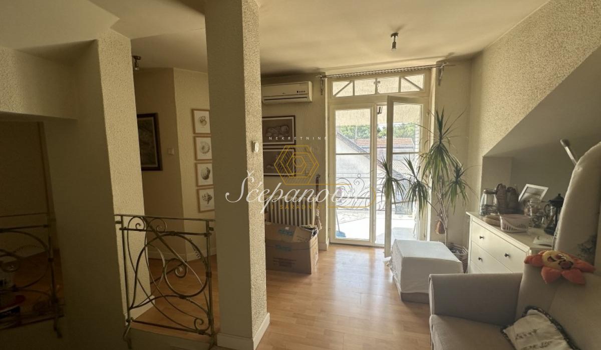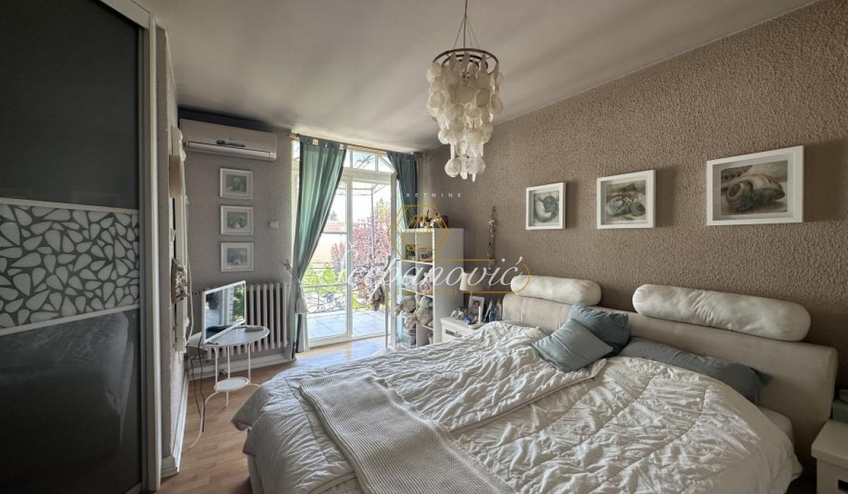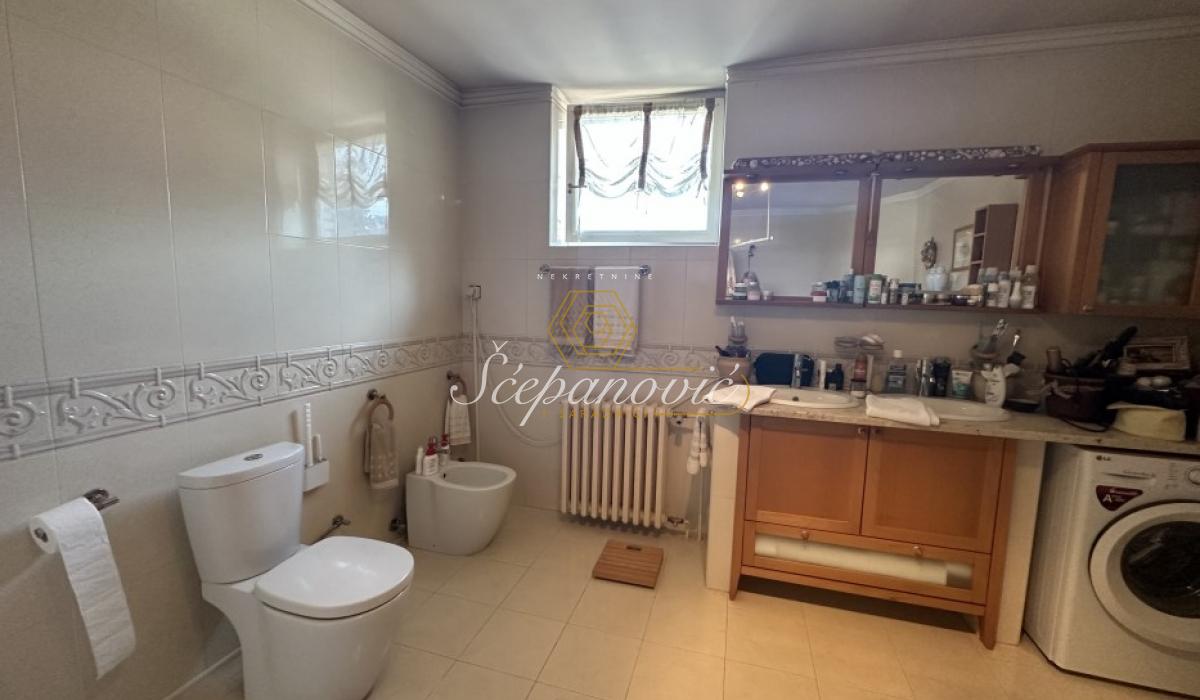 Izdaje se kuća stvarne površine 300m2. Podeljena je na dva dela, deo koji se izdaje je 230m2 i sastoji se od 4 spavaće sobe, prostranog salonskog dnevnog boravka sa trpezarijom i takođe prostranom kuhinjom, dva kupatila od kojih jedno ima hidromasažnu kadu a drugo tuš kabinu i dve terase.