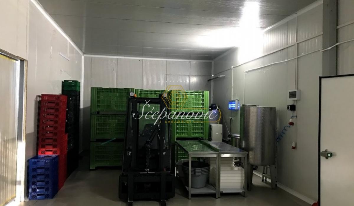 Prodaje se hala (hladnjača) u mestu Bačko Gradište uknjižene površine 306m2, a ukupne površine 500m2. Poseduje odličan prilaz do asfaltnog puta (izlazi na dve ulice - jedan pravac kretanja kamiona). Nalazi se svega 10tak kilometara od Bečeja, pored glavnog puta i 35km od Novog Sada. Površina zemljišta je 2786m2 koje se vodi kao građevinsko zemljište, što Vam omogućava da dodatnu izgradnju na parceli. Hala poseduje: prostor za prijem robe; aneks u kojem se nalazi kancelarija sa mokrim čvorom, kao i dva ulaza (muški i ženski) sa mokrim čvorovima - ulazak u hladnjaču; podhodnik iz kog se direktno ulazi u hladnjaču. Hladnjača se sastoji od tunela za brzo zamrzavanje robe kapaciteta 2t za 24h i 6 lager komora po 20t robe (ukupno 120t). Proizvodni prostor je površine 80m2, a pothladni prostor je 70m2. Odobrena snaga struje koja snabdeva hladnjaču iznosi 50KW (sa kojom hladnjača nesmetano funkcioniše). Postoji mogućnost izgradnje sopstvene trafostanice snage 150KW (ukoliko postoji potreba za proširenjem kapaciteta).