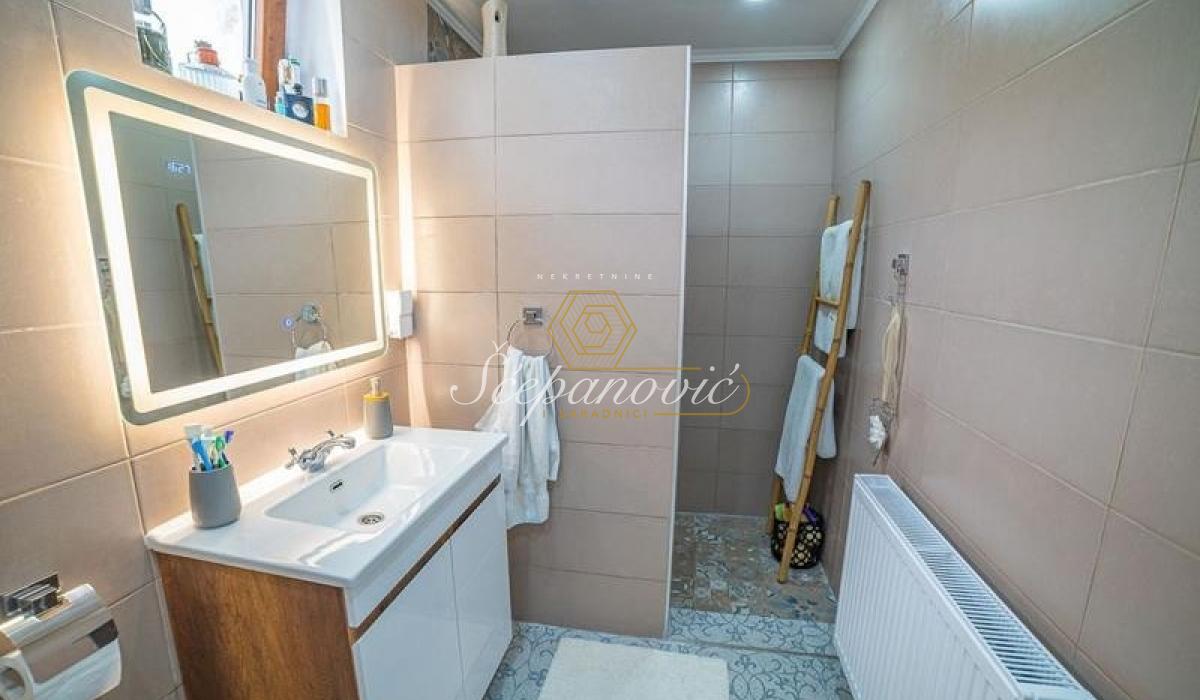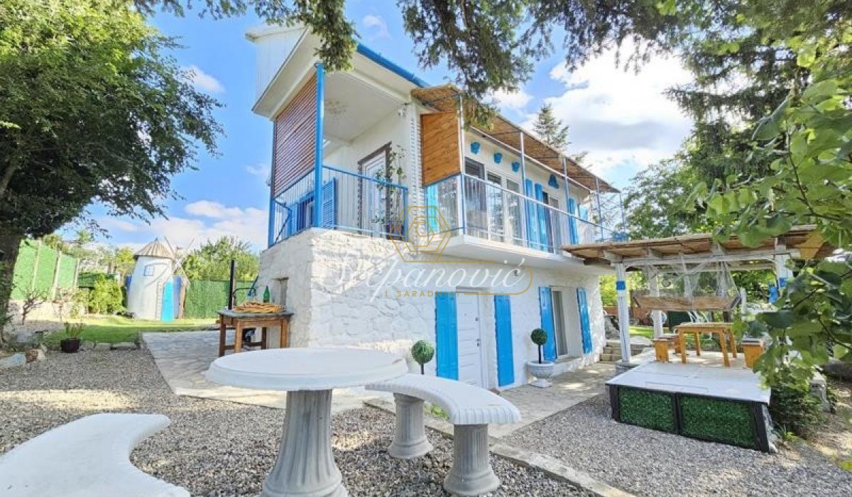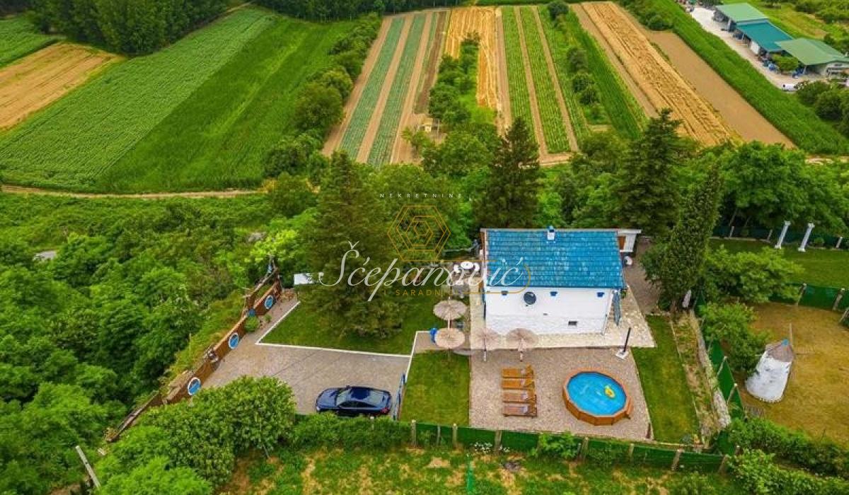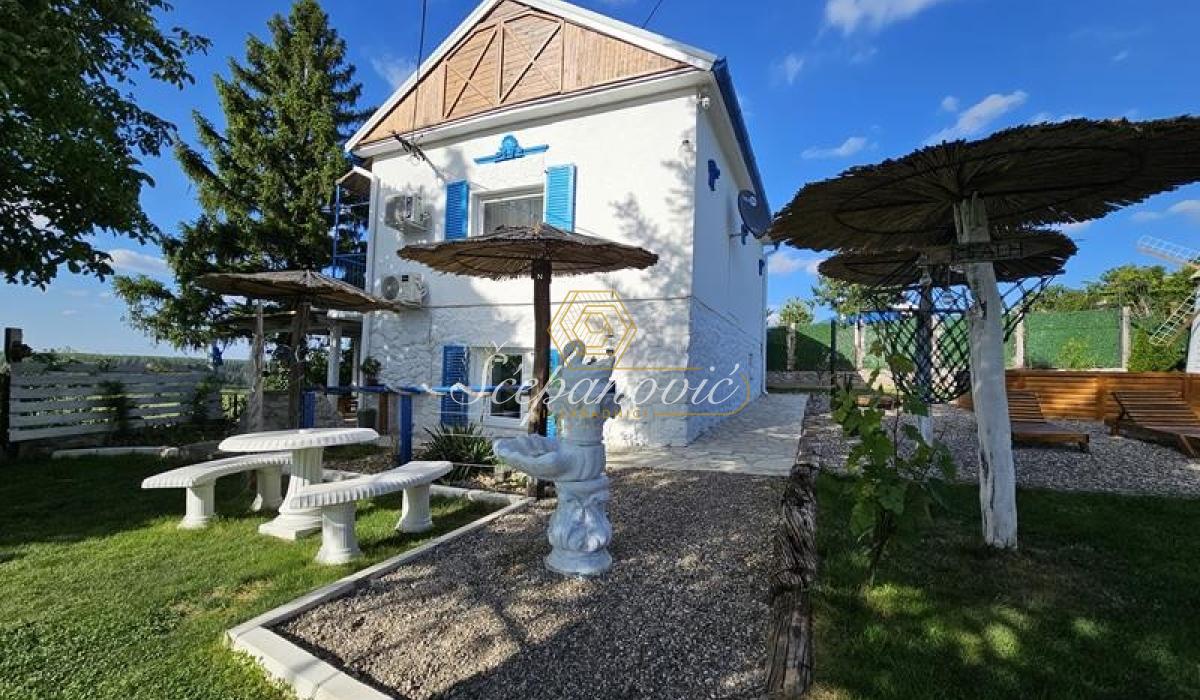 Ako želite svoju privatnost i mir na Fruškoj gori, na samo 10km od centra Novog Sada, predstavljamo Vam kuću na lepom placu, adaptiranu u mediteranskom ruhu. 51m2 u osnovi i 51m2 sprat. Donja etaža se sastoji od dnevne sobe, kuhinje, kupatila i ostave. Na spratu su dve spavaće sobe i galerija sa pogledom. Plac od 1.067m2 sa predivnim pogledom na dve strane. Zamenjena je kompletna stolarija, odrađene instalacije, novi zidovi, podovi, stolarija sva unutrasnja i spoljna, novo centralno grejanje, nov nameštaj i kompletno nova tehnika. Prodaje se potpuno opremljena, po isplati odmah i useljiva.
