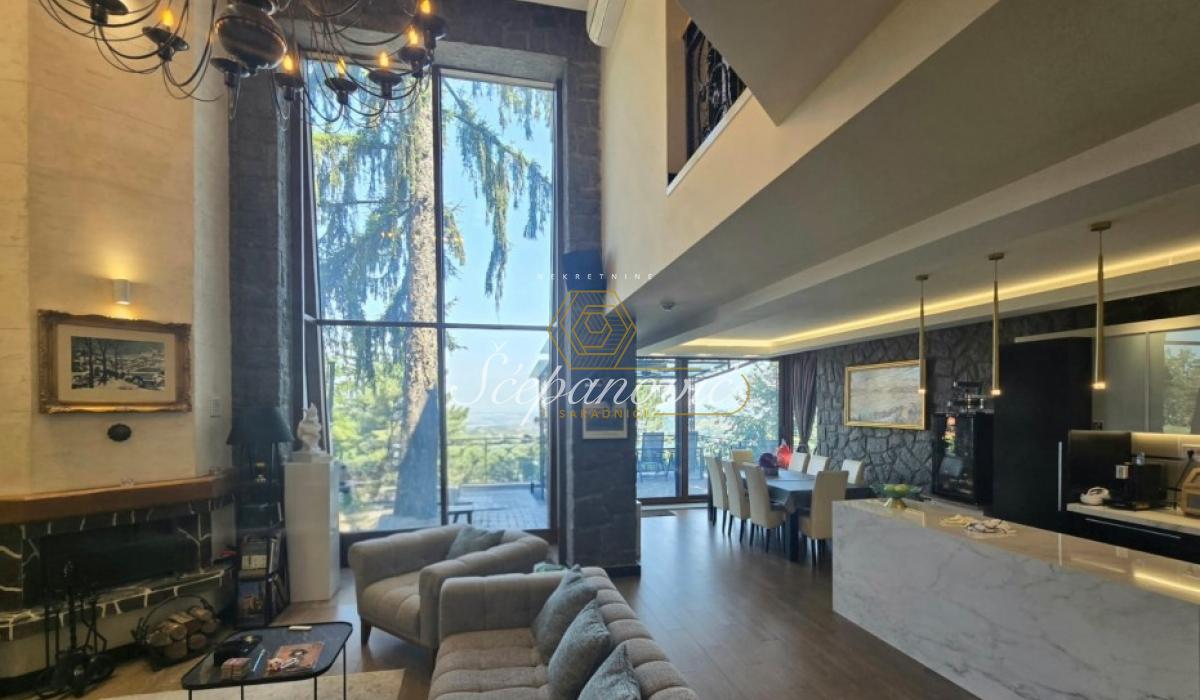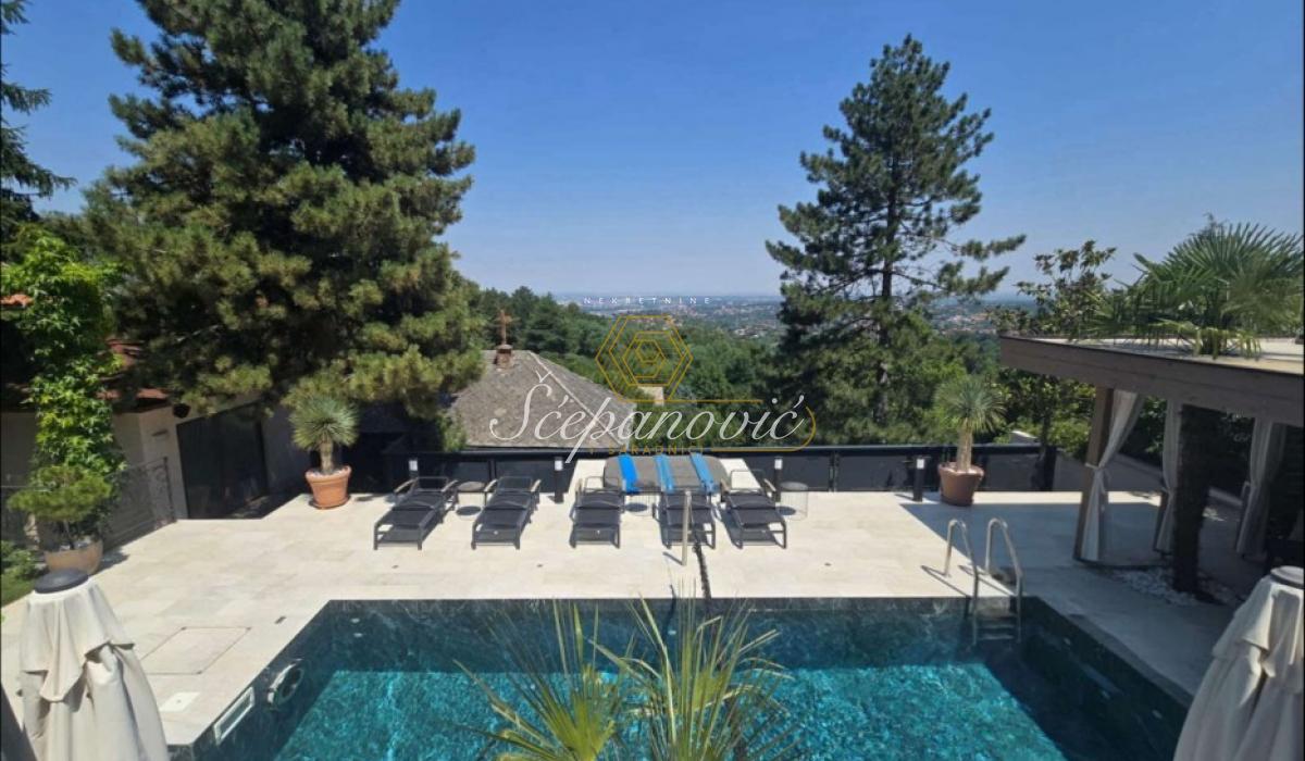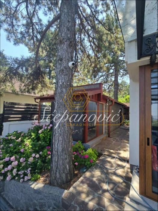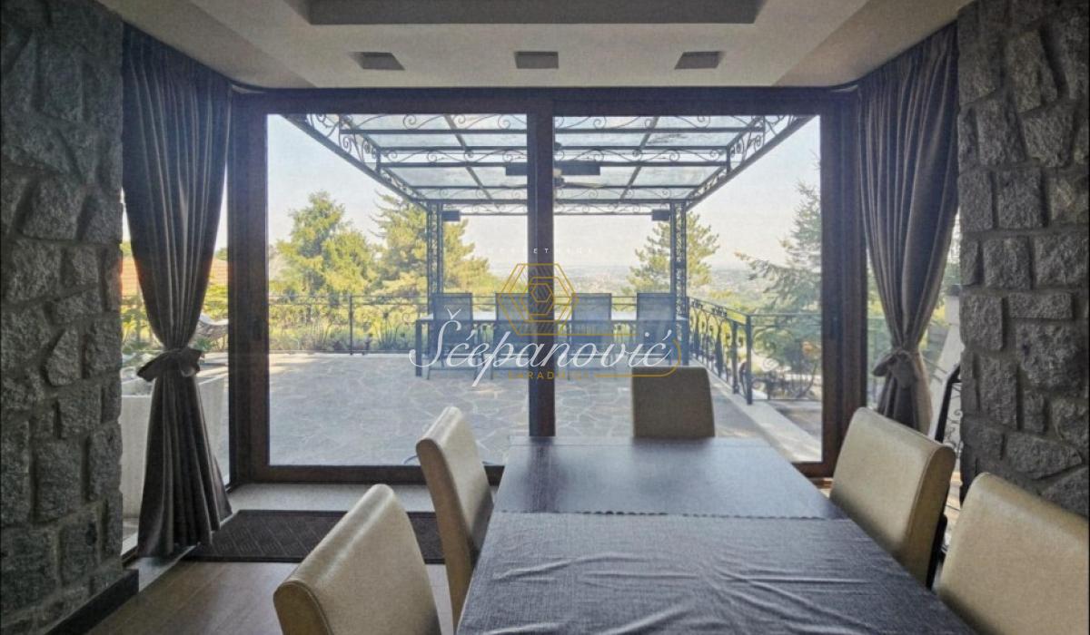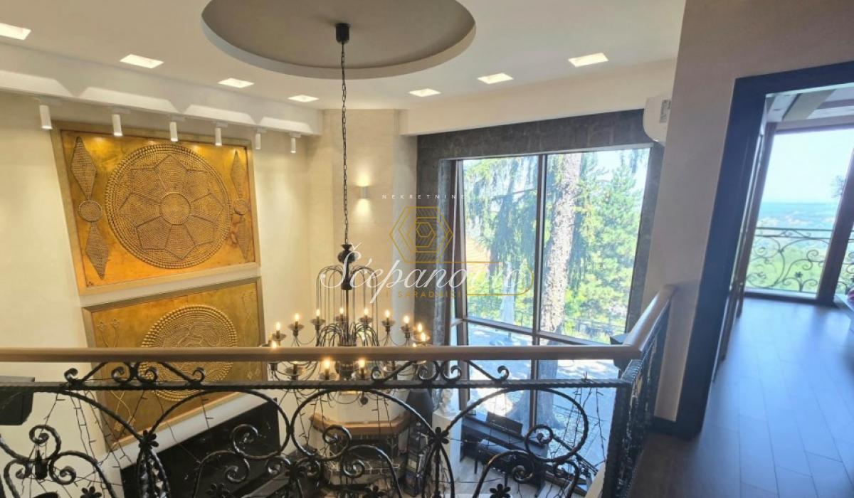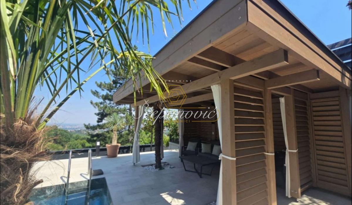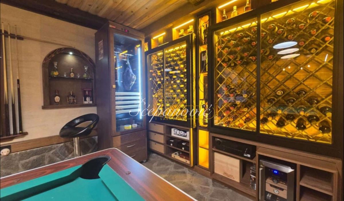 Na jedinstvenoj lokaciji, na samom obodu Nacionalnog parka Fruška gora, nalazi se ova super luksuzna kuća od 388m2,na placu površine 1.480m2. Smeštena na nadmorskoj visini od 320m, sa dvorištem okruženim stoletnim borovima i drugim četinarima, kuća nudi apsolutnu privatnost i jedan od najlepših pogleda na Novi Sad i okolinu, pogled koji se ne može zakloniti. Po strukturi kuća je Su+Pr+1. Poseduje prostrani dnevni boravak visine 6m, 4 spavaće sobe, 3 kuhinje, 4 kupatila i dva toaleta, veliku salu za proslave i prijeme (kapacitet do 30 gostiju), vinski podrum i vešernicu. Kuća ima novu saunu, kompletno opremljenu teretanu sa prelepim pogledom, radionicu, spoljni đakuzi za četiri osobe (nekorišćen), natkriven parking za 3 vozila sa punjačem za elektro-automobile. Dvorište je potpuno uređeno puno borova, maslina, palmi, lavandi. Kompletan travnjak od oko 500m2, sve biljke su pod automatskim zalivnim sistemom, takođe u dvorištu se nalazi novi bazan sa velikim turbo džetom. Kuća je u potpunosti renovirana pre dve godine od temelja do krova, prodaje se kompletno nameštena sa gomilu opreme. Na kući su veliki portali sa protivprovalnim staklom, video nadzor i pametni sistemi osiguravaju maksimalnu sigurnost. Kuća ima rezervoar za vodu u slučaju nestašice, depurator-omekšivač vode za celu kuću, agregat, profesionalnu ventilaciju u sali za proslave, kamin, veliki roštilj sa delom za sač, pušnicu, dva sistema za grejanje na gas i novu toplotnu pumpu, nove klime u svim prostorijama. Po celoj kući postavljeni su zvučnici, led rasveta, internet, kablovska, alarmni sistem. Kuća se nalazi u gradskoj zoni na 9km od centra Novog Sada, a u bliskoj budućnosti na pola sata od Beograda. Struja preko dva brojila, gradsku vodu, gradsku čistoću, uličnu rasvetu i redovno se sneg čisti zimi. Kupovina ove kuće nije samo investicija u nekretninu to je ulaganje u stil života.