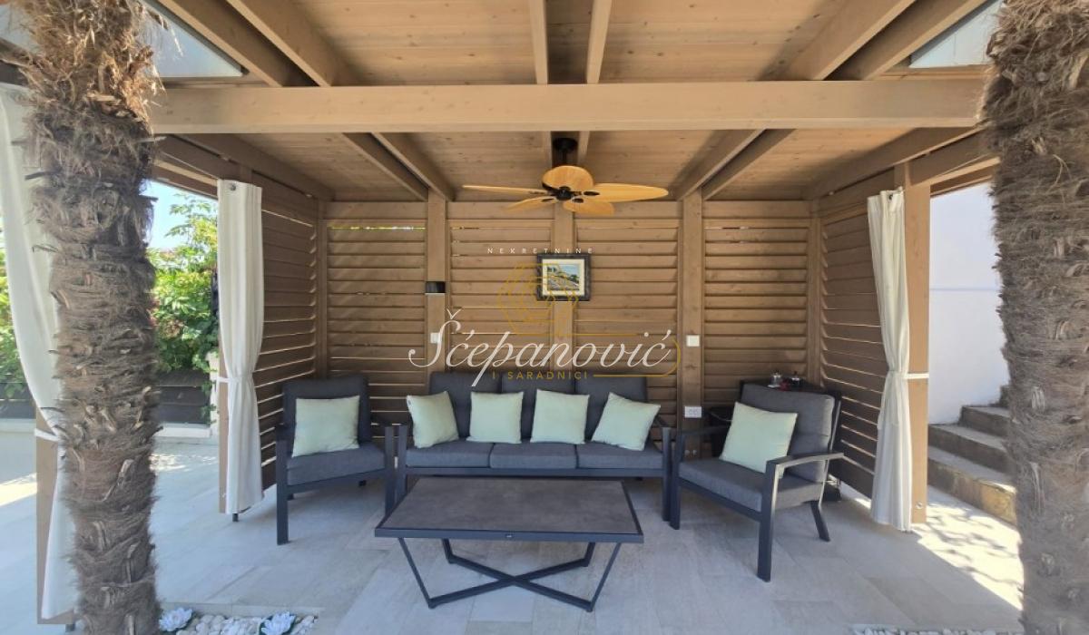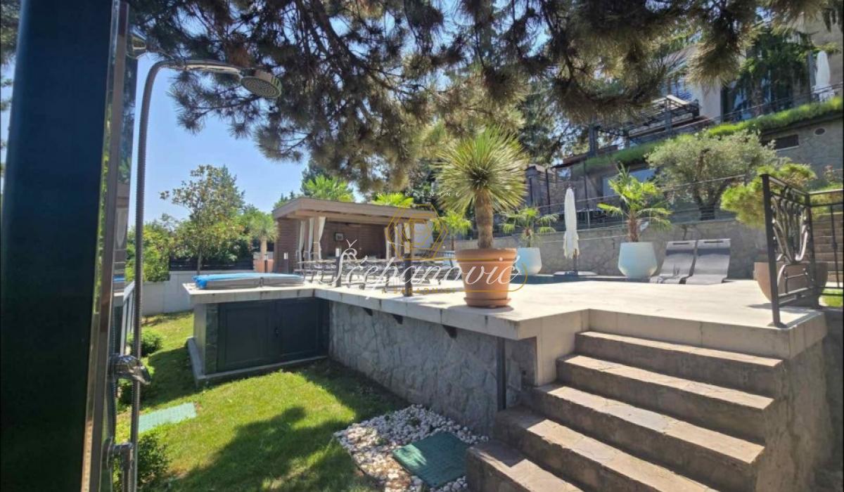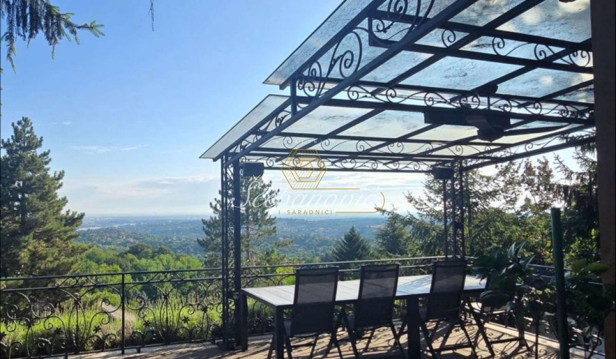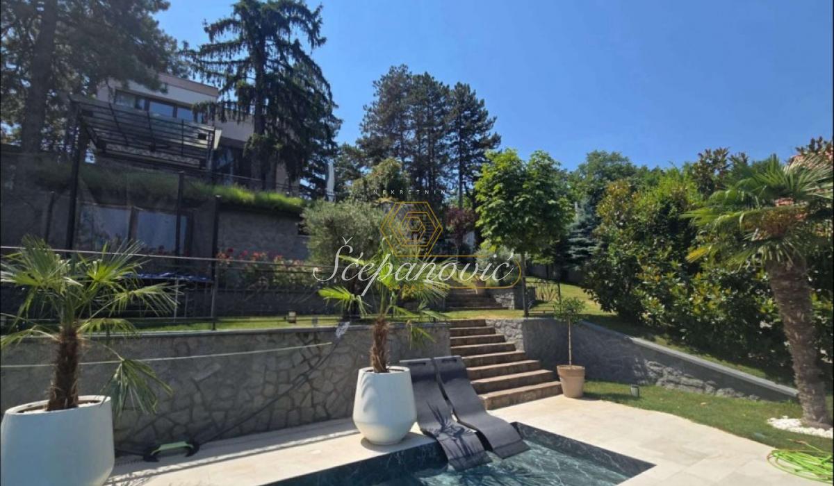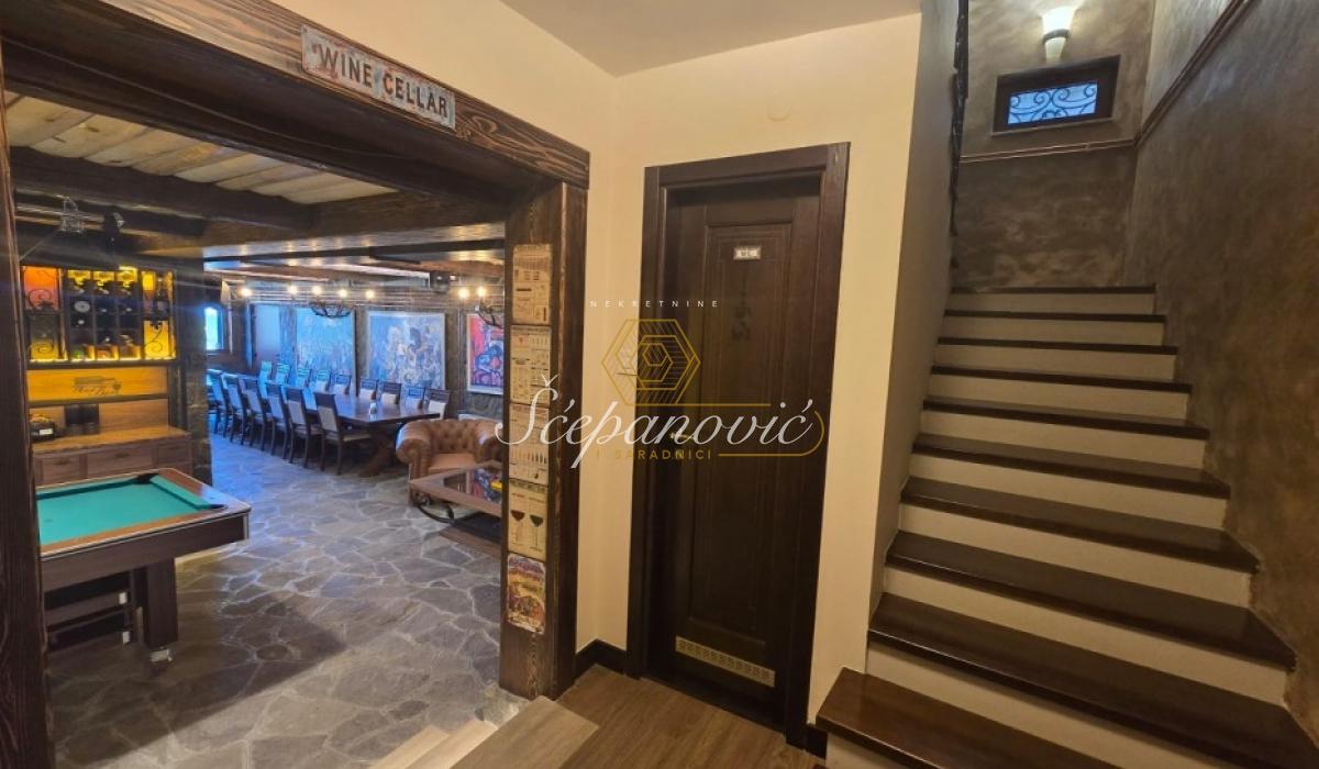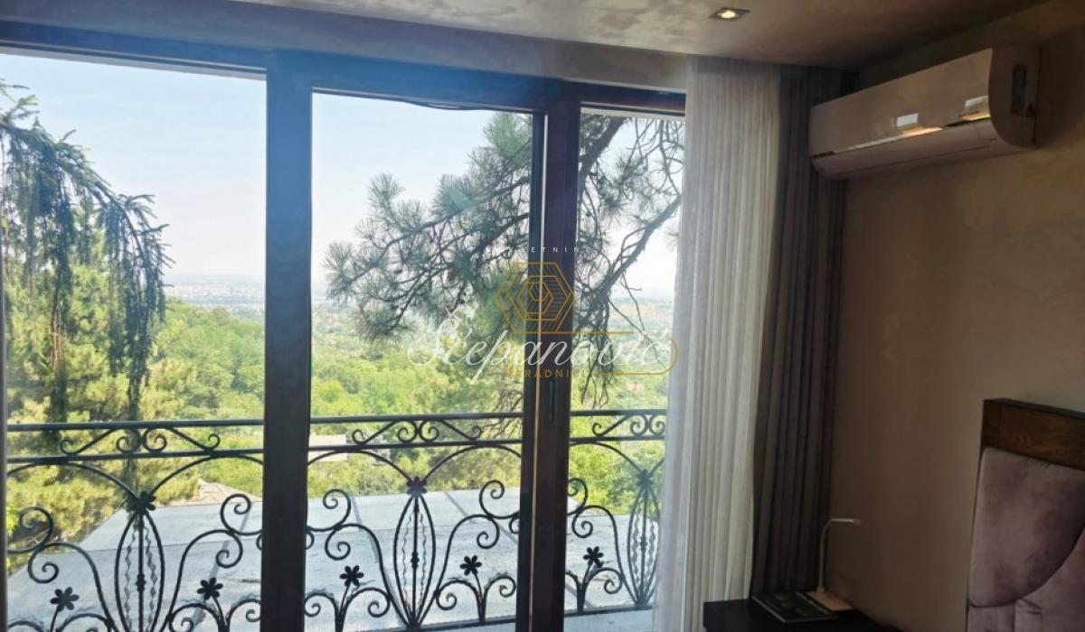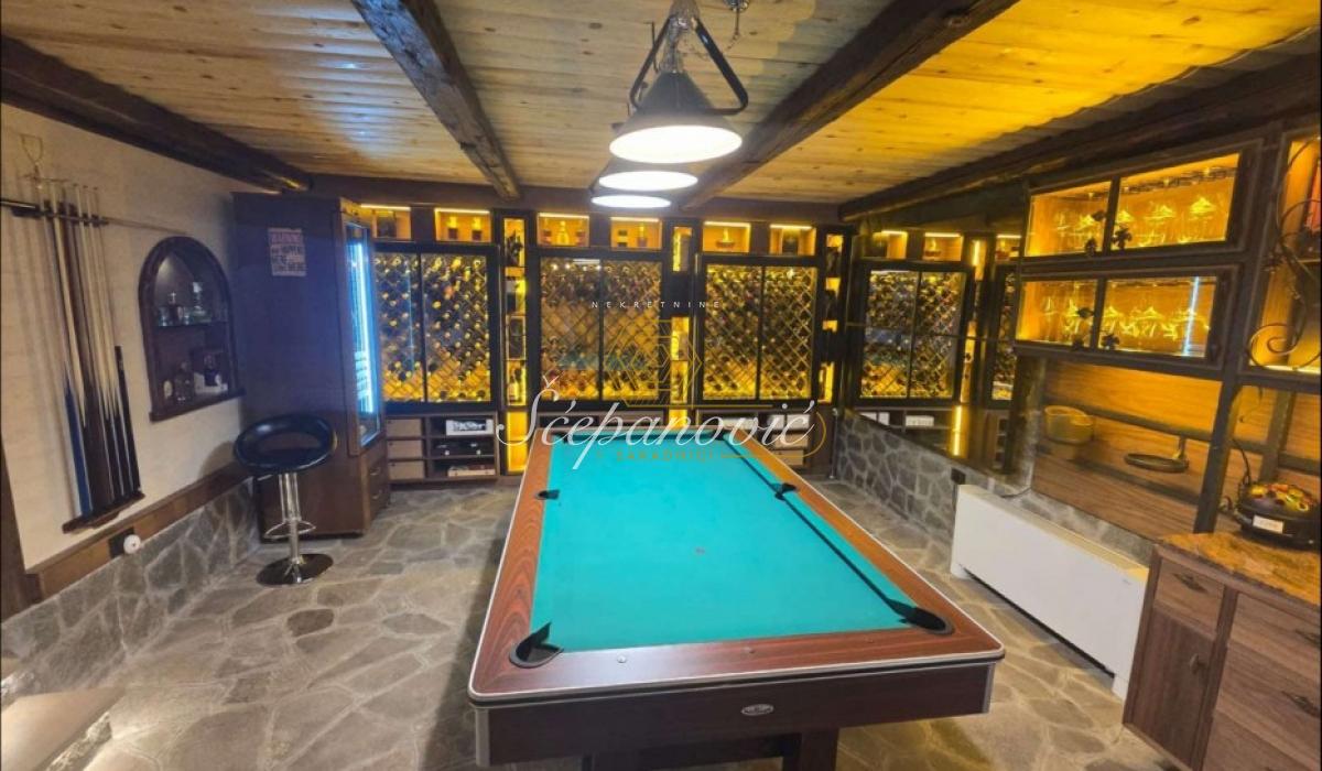 Na jedinstvenoj lokaciji, na samom obodu Nacionalnog parka Fruška gora, nalazi se ova super luksuzna kuća od 388m2,na placu površine 1.480m2. Smeštena na nadmorskoj visini od 320m, sa dvorištem okruženim stoletnim borovima i drugim četinarima, kuća nudi apsolutnu privatnost i jedan od najlepših pogleda na Novi Sad i okolinu, pogled koji se ne može zakloniti. Po strukturi kuća je Su+Pr+1. Poseduje prostrani dnevni boravak visine 6m, 4 spavaće sobe, 3 kuhinje, 4 kupatila i dva toaleta, veliku salu za proslave i prijeme (kapacitet do 30 gostiju), vinski podrum i vešernicu. Kuća ima novu saunu, kompletno opremljenu teretanu sa prelepim pogledom, radionicu, spoljni đakuzi za četiri osobe (nekorišćen), natkriven parking za 3 vozila sa punjačem za elektro-automobile. Dvorište je potpuno uređeno puno borova, maslina, palmi, lavandi. Kompletan travnjak od oko 500m2, sve biljke su pod automatskim zalivnim sistemom, takođe u dvorištu se nalazi novi bazan sa velikim turbo džetom. Kuća je u potpunosti renovirana pre dve godine od temelja do krova, prodaje se kompletno nameštena sa gomilu opreme. Na kući su veliki portali sa protivprovalnim staklom, video nadzor i pametni sistemi osiguravaju maksimalnu sigurnost. Kuća ima rezervoar za vodu u slučaju nestašice, depurator-omekšivač vode za celu kuću, agregat, profesionalnu ventilaciju u sali za proslave, kamin, veliki roštilj sa delom za sač, pušnicu, dva sistema za grejanje na gas i novu toplotnu pumpu, nove klime u svim prostorijama. Po celoj kući postavljeni su zvučnici, led rasveta, internet, kablovska, alarmni sistem. Kuća se nalazi u gradskoj zoni na 9km od centra Novog Sada, a u bliskoj budućnosti na pola sata od Beograda. Struja preko dva brojila, gradsku vodu, gradsku čistoću, uličnu rasvetu i redovno se sneg čisti zimi. Kupovina ove kuće nije samo investicija u nekretninu to je ulaganje u stil života.