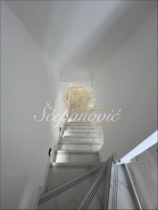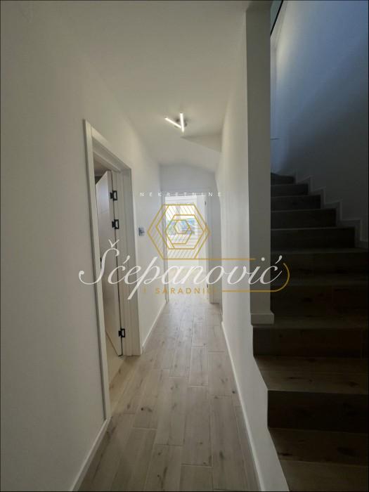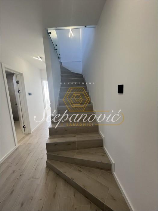 Dvojna kuća od 221m2 nalazi se u mirnoj i lepoj ulici na Telepu, u blizini Bulevara patrijarha Pavla, pružajući idealno okruženje za porodični život. Raspoređena je na suteren, prizemlje i dva sprata, što omogućava dovoljno prostora i funkcionalnost. U suterenu možete zamisliti dodatne sadržaje poput saune ili kućnog bioskopa. Prizemlje je savršeno za dnevne aktivnosti, sa prostranim dnevnim boravkom, kuhinjom i trpezarijom. Na gornjim spratovima se nalaze spavaće sobe i open space koncept. Poseduje sopstveno dvorište, a vlasnik će se pobrinuti da ono bude kompletno uređeno po željama kupca. Kuća takođe ima garažno mesto, dok je ispred obezbeđen dodatni parking, nudeći komfor u svakodnevnim situacijama. Vlasnička dokumentacija je uredna.