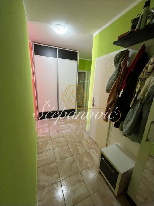 Stan je idealnog rasporeda, gde se iz predsoblja sa jedne strane ulazi u dnevni boravak sa kuhinjom i terasom, dok su kupatilo i toalet u sredini stana a sa druge strane su dve velike spavaće sobe koje gledaju na dvorište.