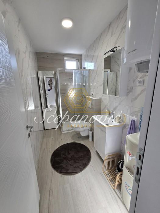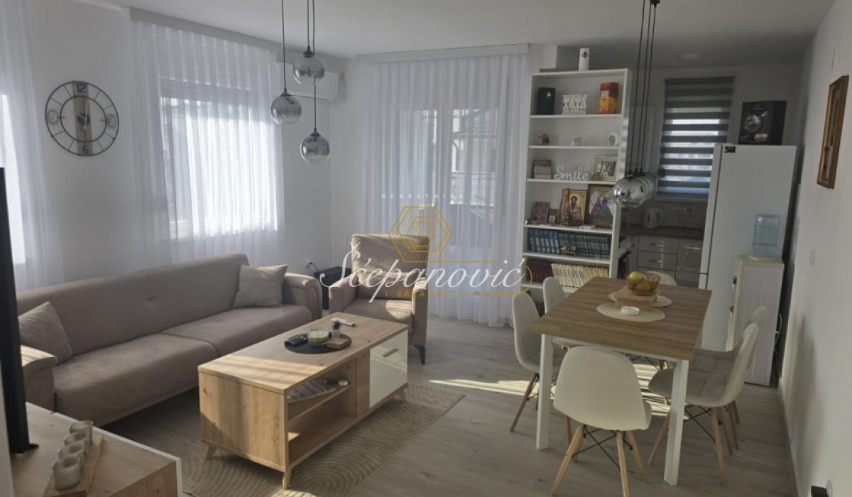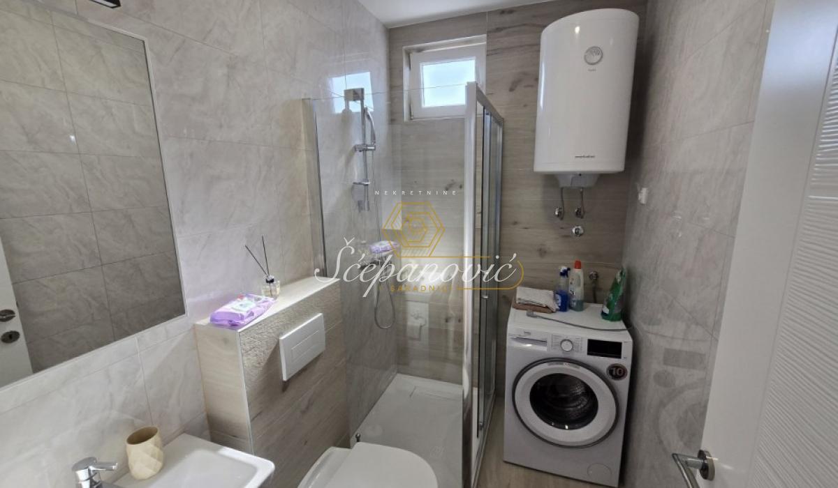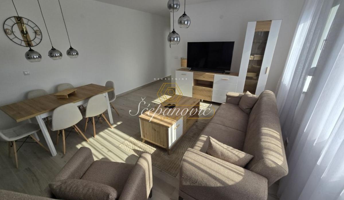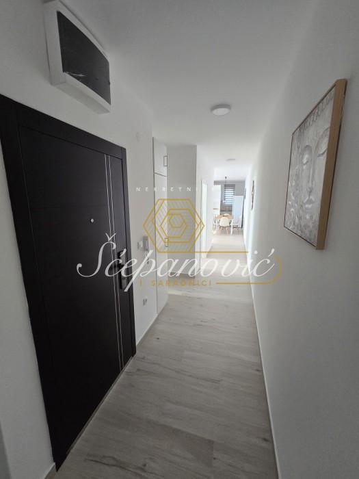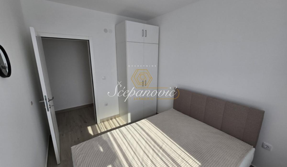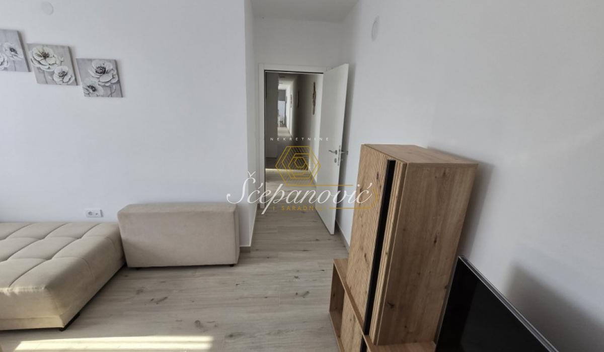 Stan je kompletno namešten sa novim nameštajem i tehnikom, uključujući dva klima uređaja, veš mašinu, sudo mašinu, frižider, zamrzivač, rernu, šporet, internet, TV i ugradne plakare. Grejanje je podno, što doprinosi dodatnoj udobnosti tokom hladnijih meseci. Sigurnosna vrata dodatno osiguravaju mir i sigurnost.