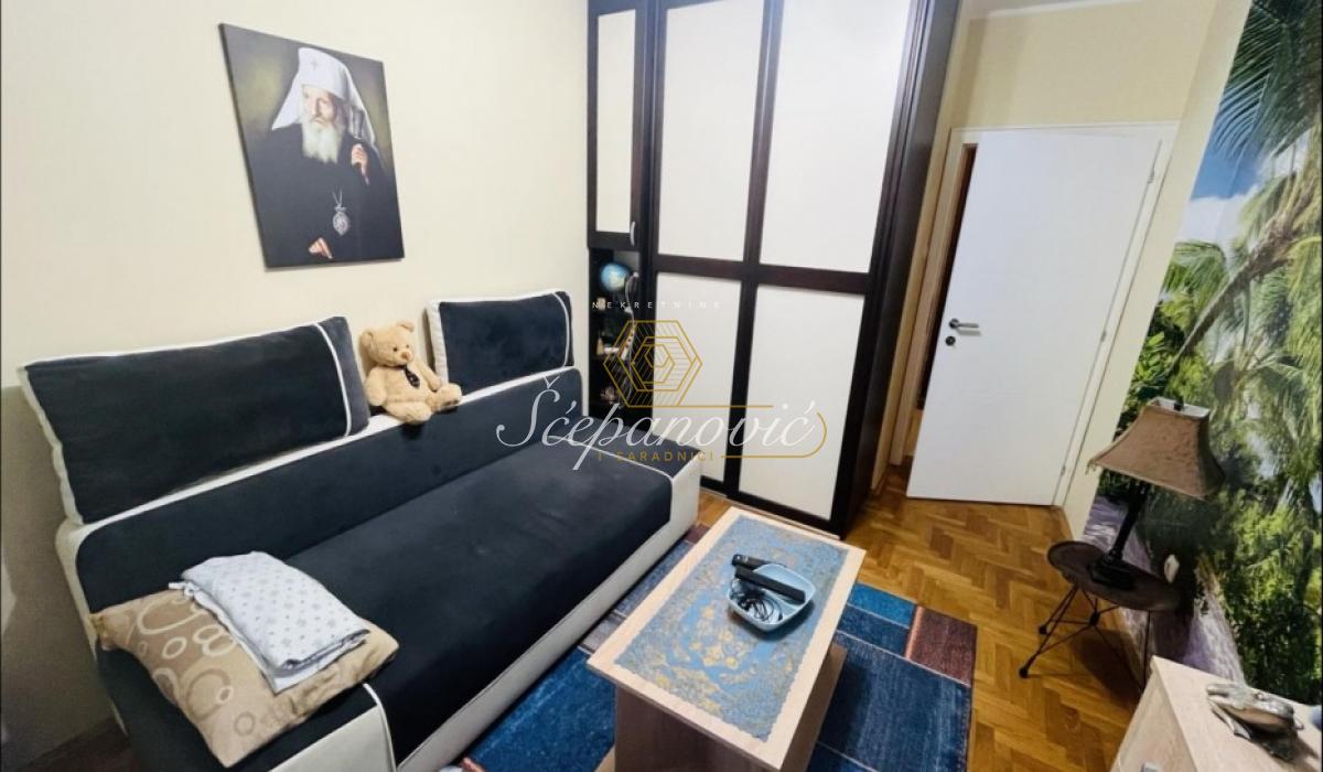 Prodaje se komforan dvosoban stan u blizini ugla Janka Čmelika i Hadži Ruvimove. Nalazi se na 1. spratu zgrade sa liftom, ima 41m2 i sastoji se od hodnika iz kog se ulazi u ostale prostorije: dnevni boravak sa kuhinjom, trpezarijom i izlazom na zastakljenu terasu, spavaću sobu i kupatilo. Stan se prodaje kompletno opremljen nameštajem i kućnim aparatima. Vlasnička dokumentacija je uredna i postoji mogućnost kupovine putem stambenog kredita. U neposrednoj blizini se nalaze svi sadržaji neophodni za svakodnevni život.