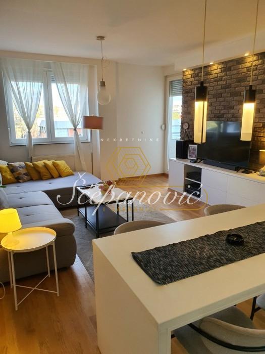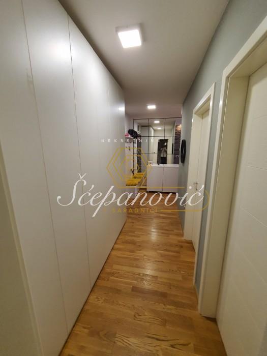 Predstavljamo Vam fantastičan, trosoban stan u najpopularnijem kompleksu u gradu - Sajam kompleksu. Opremljen sa ukusom i stilom, nekretnina je spremna za novog vlasnika. Spoljno parking mesto u ceni, kao i ostava u suterenu. Stan se sastoji iz dnevnog boravka sa kuhinjom i trpezarijom, sa izlazom na terasu, dve spavaće sobe, kupatila i hodnika iz kojeg se ulazi u sve prostorije.